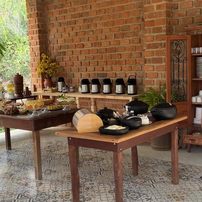 Início do dia com um delicioso café da manhã rural, preparado com produtos típicos da região. ☕🥮